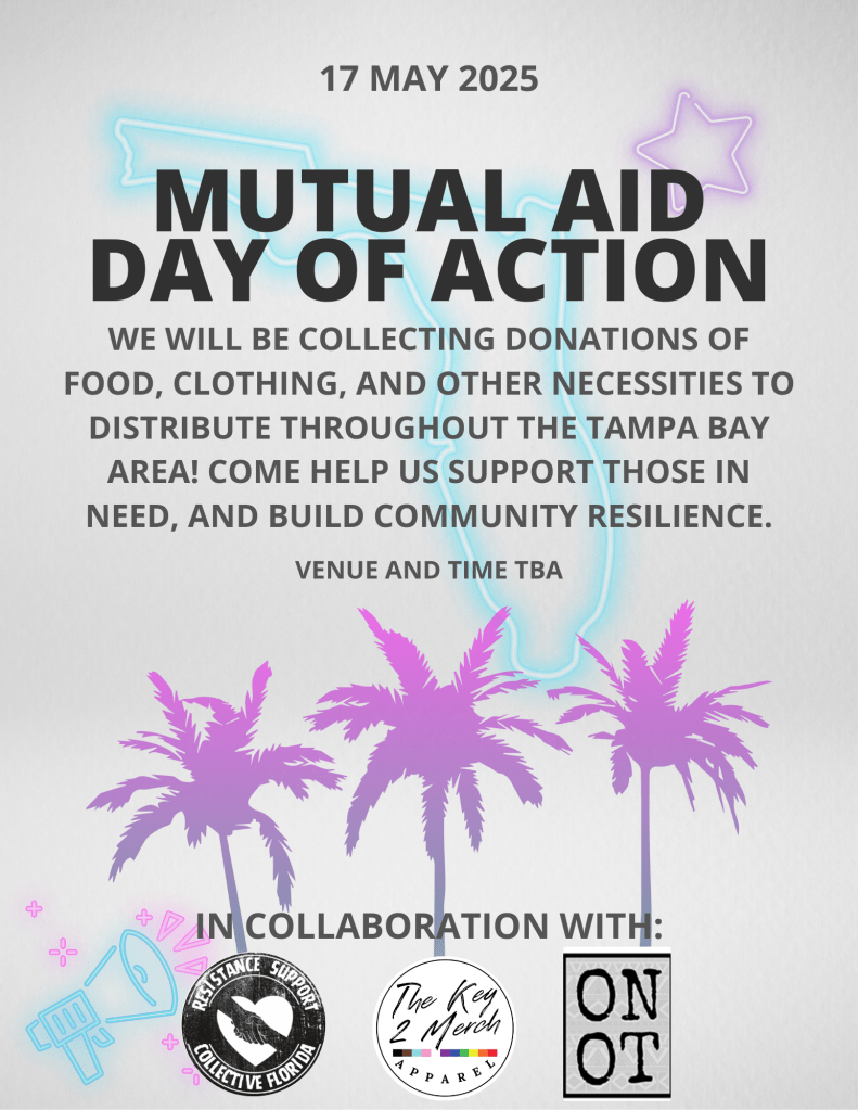 May 17th, 2025: Mutual Aid Drive to collect donations of food, clothing, supplies for children and other necessities for our next day of action! Stay tuned for details.